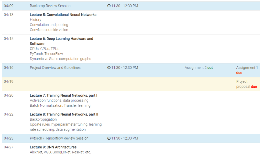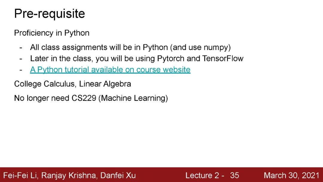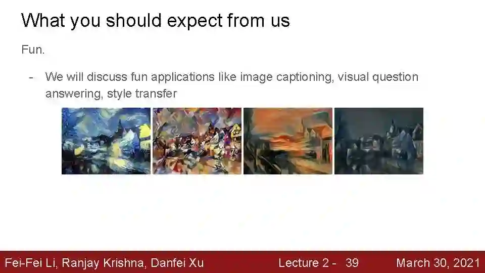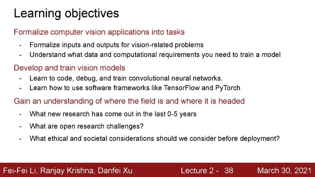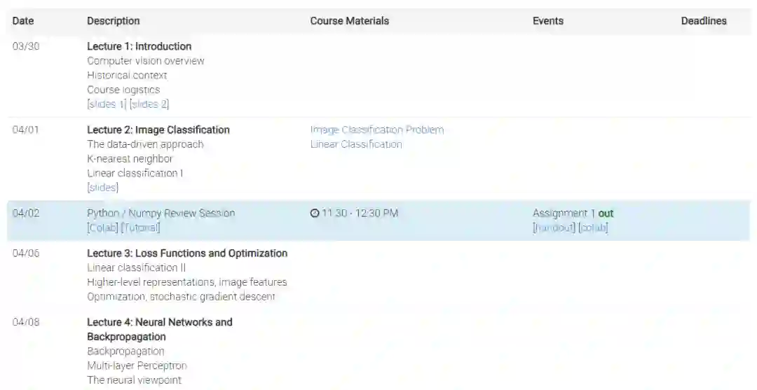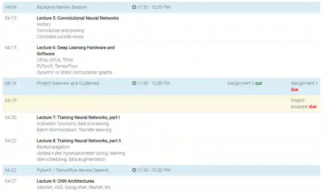 在本课程中,学生将学习如何实现、训练和调试自己的神经网络,并对计算机视觉的前沿研究有详细的了解。我们将涵盖学习算法,神经网络架构,和实际工程技巧的训练和微调网络的视觉识别任务。