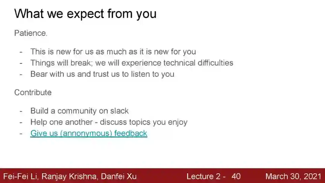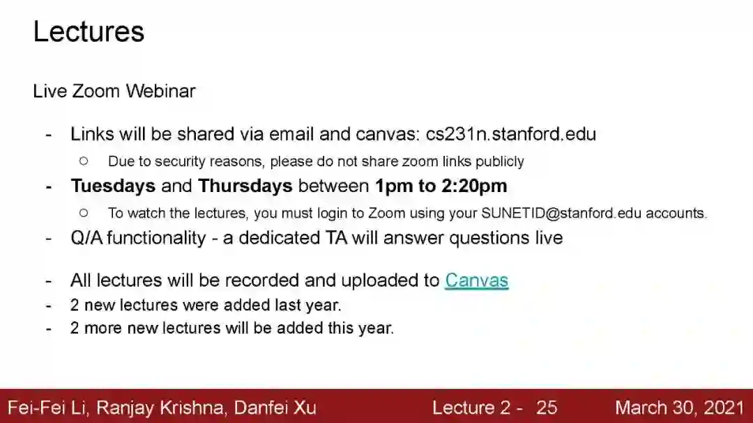 【导读】李飞飞老师的CS231N课程《卷积神经网络视觉识别》被奉为经典,最新2021季3月30号开始了!众多想学习深度卷积神经网络的同学,可不能错过!