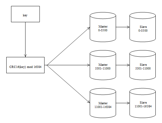 首先,我们来学习Redis的集群分片机制。Redis使用CRC16(key) mod 16384进行分片,一共分16384个哈希槽,比如若集群有3个节点,则我们按照如下规则分配哈希槽: