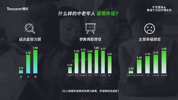 中老年人传谣的主要原因:谣言鉴别能力差、受教育程度低、主观幸福感低。相比于城镇中老年人,农村的中老年群体更有可能传播谣言。