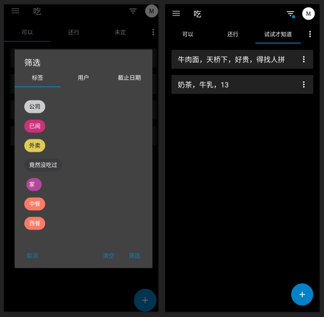 不知不觉,到了午休时间,对于一个吃货而言,午餐吃什么是不能含糊的。我打开了手机上的 Nextcloud Deck 应用,点开了其中的「吃」面板,我在这个面板里面写下了所有想吃的东西,并且给他们打上了地点和价格的标签,我用标签搜索功能浏览了公司附近我想吃的美食,发现有一家牛肉面还没尝过,于是决定友好地拉着朋友去尝试一下。