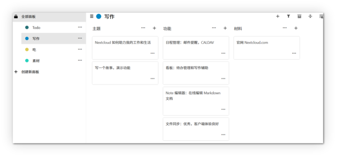 查看了今天的日程安排,解决完了早餐,之后就该上班了。上午处理完各种杂事和一些临时任务,准备拟定几个选题和文章大纲并提交,这就该 Deck 这款 Nextcloud 应用出场了。Deck 运行在 Nextcloud 上的一个类似于 Trello 的简单看板应用。应用大致分为三级,面板 - 列表 - 卡片,可以用来做灵感收集,文章构思,以及任务管理。