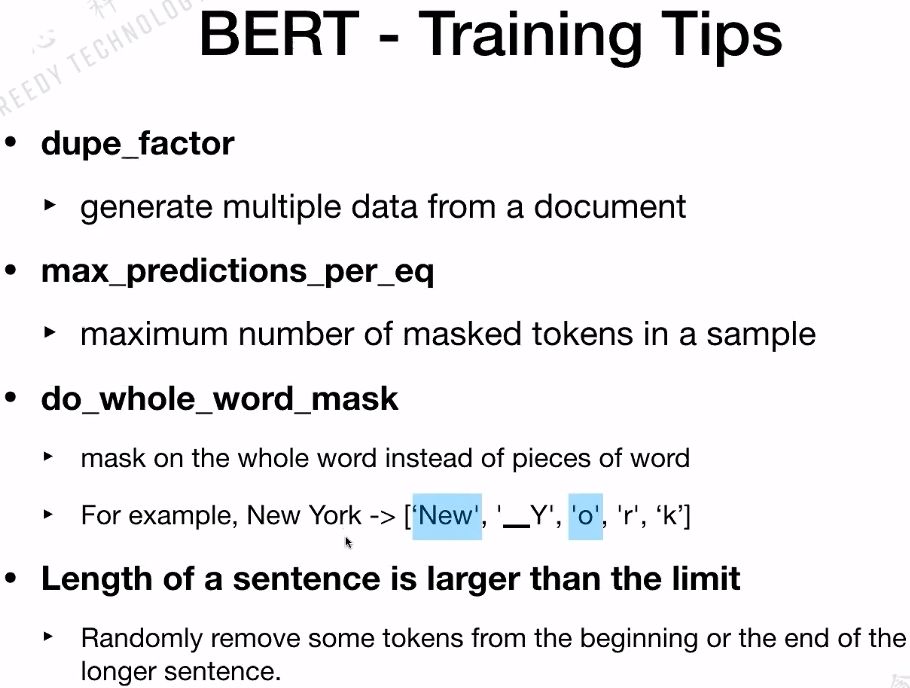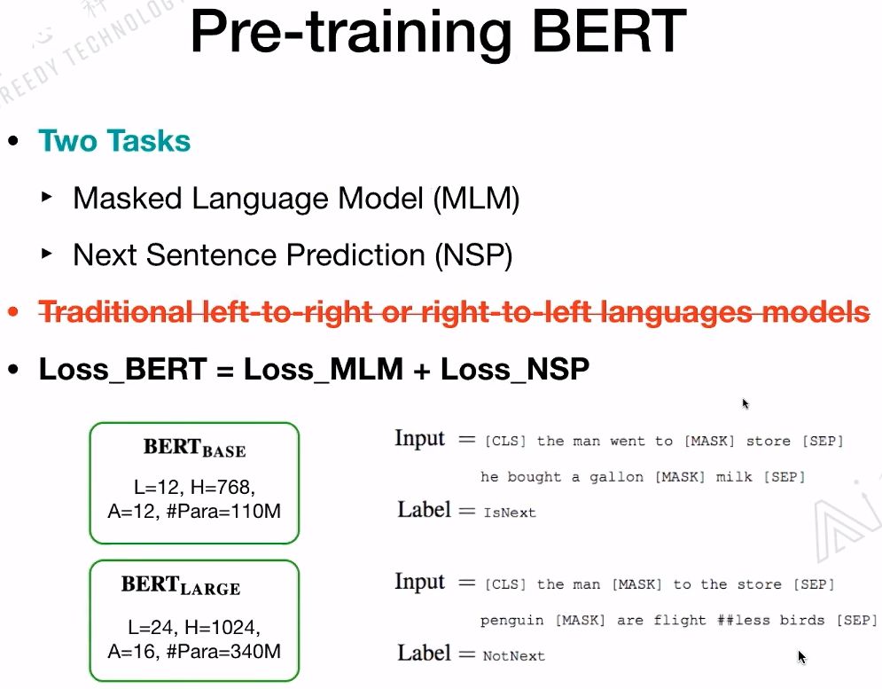 BERT是如何做预训练的?有两个任务:一是Masked Language Model(MLM);二是Next Sentence Predicition(NSP)。在训练BERT的时候,这两个任务是同时训练的。所以,BERT的损失函数是把这两个任务的损失函数加起来的,是一个多任务训练。