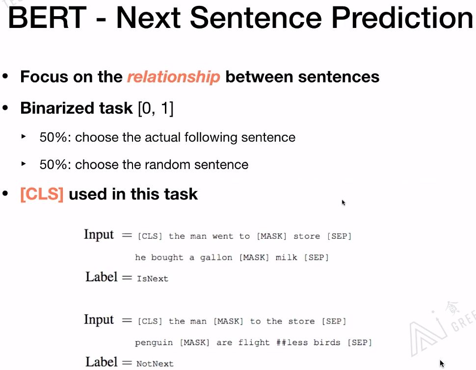Next Sentence Prediction是更关注于两个句子之间的关系。与Masked Language Model任务相比,Next Sentence Prediction更简单些。