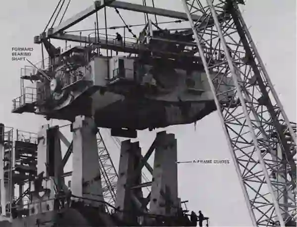 不过相比苏联人强行登船的可能性,大家最担心还是在月池里的CV会被俄国人看到,任务的真实目的会暴露。但是仔细检查之后就立刻放心了:在月池之上架着各种钢杆吊臂和起吊装置,把月池遮得严严实实,从天上什么也看不见。