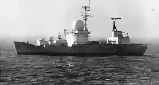 也是在7月23日,早上4点08分,雷达发现不明船只靠近。到8点50分,目视发现不明船只是苏联拖网渔船SB-10号。之前说过,苏联人没有那么雄厚的资本,所以大量的情报收集工作都是靠“拖网渔船”来完成的。这一次,苏联人玩的还是老一套,除了从几十米的位置上近距离观察,SB-10再次占据了洋流下方,尝试收集HGE的垃圾,从中挖掘出有价值的信息。(补充说明:在20世纪70年代,环保意识远没有今天这样强烈,当时船只在海上是可以随便丢垃圾的,如今已经不行了)。