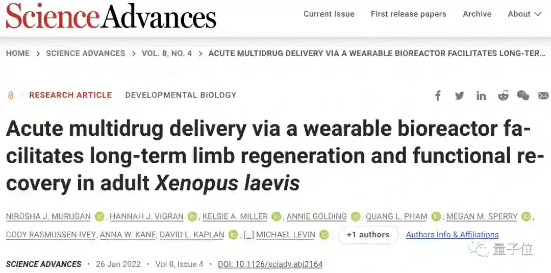 接下来,该团队将进一步探索药物和生长因子的组合,让青蛙再生肢体的形状和功能更加完整,比如具有更像的蹼、脚趾、更详细的骨骼和肌肉特征。