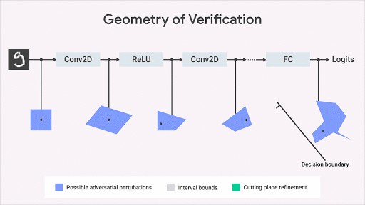 严格的测试和训练非常有助于构建强大的机器学习系统。但是,没有多少测试可以形式化地确保系统的行为符合我们的要求。在大规模的模型中,由于输入扰动有无穷多种,因此我们很难列举出给定输入集(例如,对图像的无穷小扰动)所有可能的输出。但是,与在训练中的情况一样,我们可以通过在输出集上设置几何区域来找到更有效的方法。形式化验证是 DeepMind 正在进行的研究主题。
