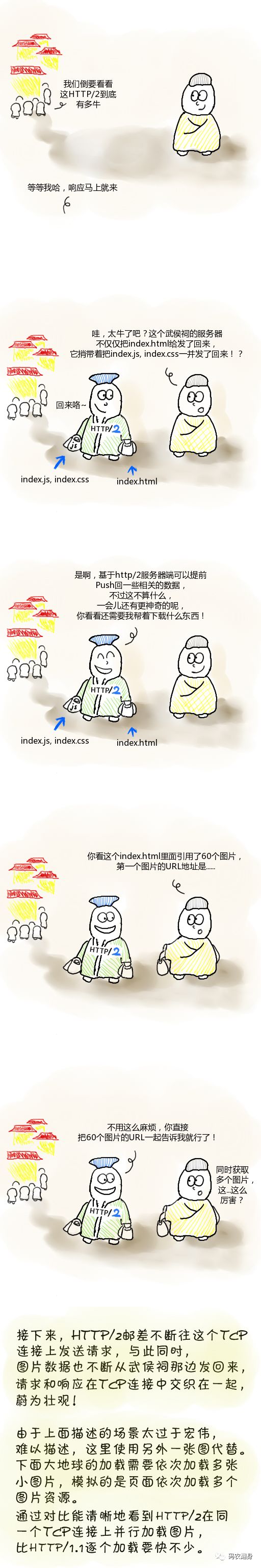 后记:本文主要讲解了HTTP 1.1的主要问题,以及HTTP 2的一大特点:多路复用, 实际上HTTP/2还有很多很好的特性没有展开,如Server Push, Header压缩,流量控制,请求优先级等等。