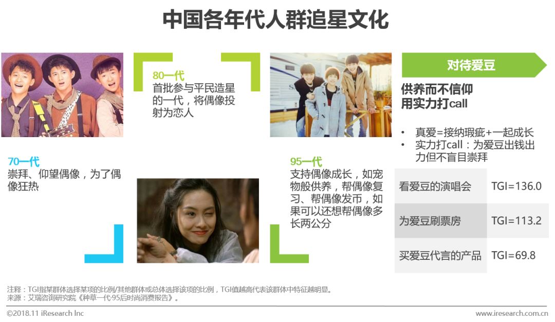 中国的追星一族从70后的狂热、80后的追捧,到95后的佛系养成式,偶像成为大众创造的消费品。95后追星表现为支持偶像成长,对待偶像如宠物般宠爱,或吐槽其费尽心力恨铁不成钢。