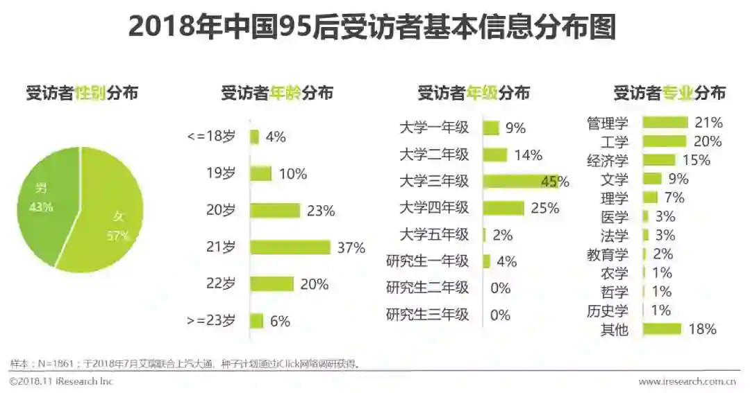男女比例基本各半,覆盖各年龄段、各专业的95后受访者