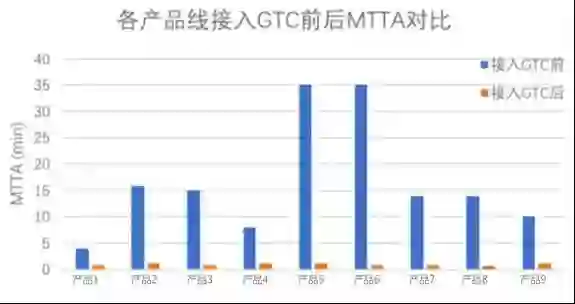 图 4. 各产品线接入 GTC 前后 MTTA 对比