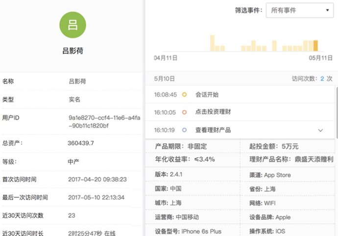 比如说现在有一个投资行为,用户在做出充值行为的刹那带来了充值成功的一个数据,基于这个行为,往上延伸到用户信息,平台要知道是谁触发了这个行为。与此同时还可以通过这个行为,探究背后的业务信息。用户为什么要做出这个行为,行为触发背后代表什么,是客户推出了什么优惠活动,还是做了相应的广告?