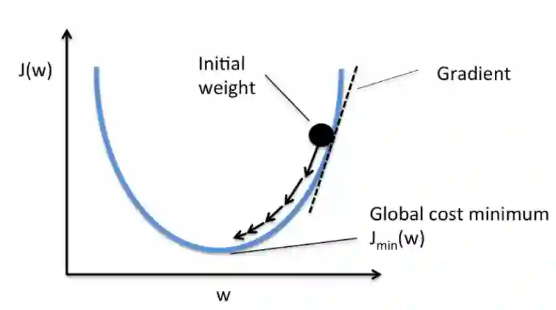 权重更新的幅度和方向通过计算代价梯度得出: