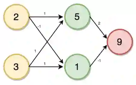这一次,我们的输入为[3, 4],权重分别为[2, 4], [4, -5], [2, 7]。