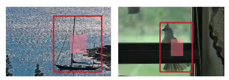 图1:边界框内的中心关键点的语义与其标注之间不一致。红色中心区域的背景像素被视为正中心关键点,这是不正确的。