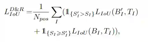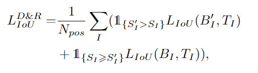 因此,为了进行可靠的网络训练,在基于ground truth和最优box以及相应的更好边界得分估算的IoU损失的监督下来优化每个边界。最终的回归损失包括两个部分: