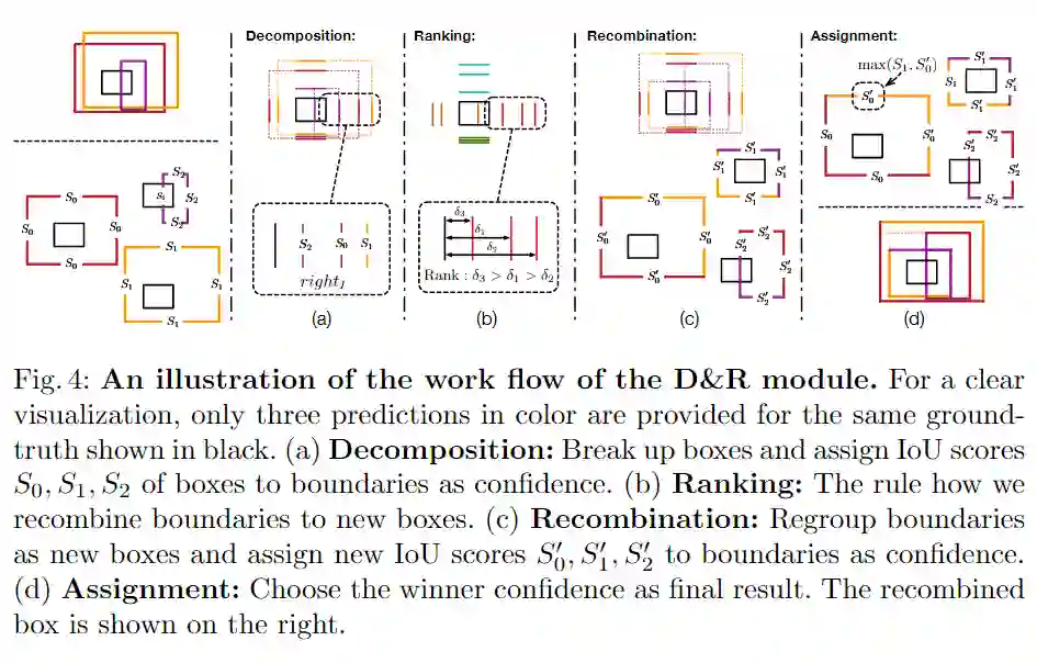 如图4所示,D&R模块由四个步骤组成,然后根据IoU回归对最终的box预测进行正则化。