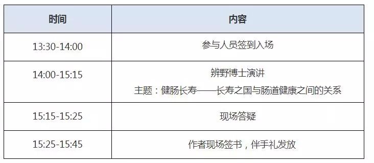 由人民邮电出版社图灵公司主办、中国食品科学技术学会益生菌分会提供学术支持的辨野义己博士健康讲座“健肠长寿——长寿之国与肠道健康之间的关系”将于12月5日,在北京日本文化中心举办。欢迎大家踊跃参加!限15人,报名并确认参加的读者,都会免费获得《大便通》一本和伴手礼一份。
