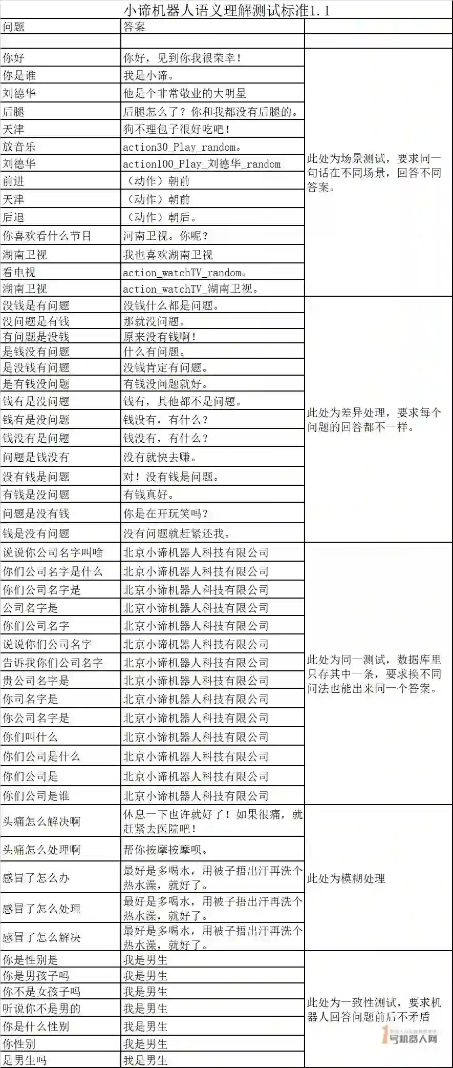 图:小谛机器人语义理解测试标准1.1