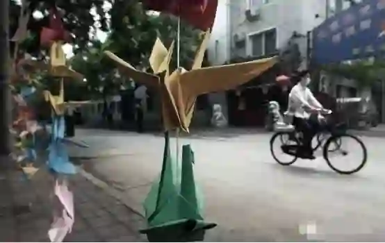 2003年5月12日,北京,中日友好医院外悬挂的千纸鹤。