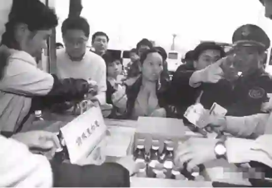 2003年2月11日,在厦门淘化大同调味品公司工厂门口,一群市民购买白醋。这里一瓶醋卖10元,而在各个小区的便利店据说已卖到30至250元不等。