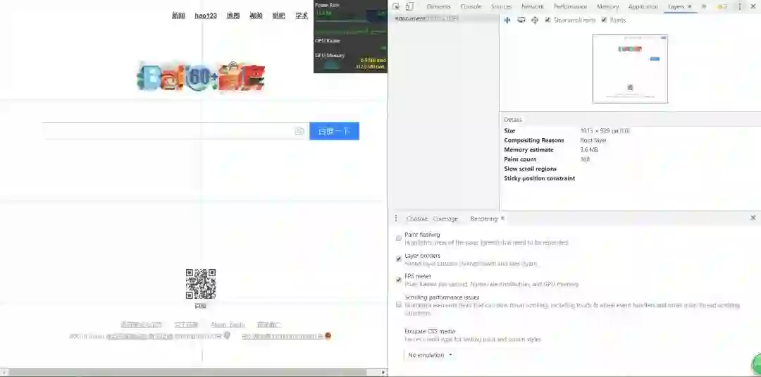 chrome 开发者工具菜单→more tools→Layers(开启渲染层功能模块)