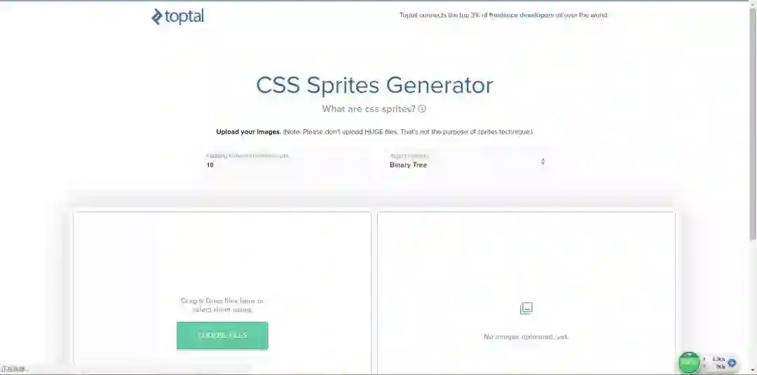 雪碧图的概念大家一定在生活中经常听见,其实雪碧图是减小请求数的显著运用。而且很奇妙的是,多张图片聘在一块后,总体积会比之前所有图片的体积之和小(你可以亲自试试)。这里给大家推荐一个自动化生成雪碧图的工具:https://www.toptal.com/developers/css/sprite-generator(图片来自官网首页)