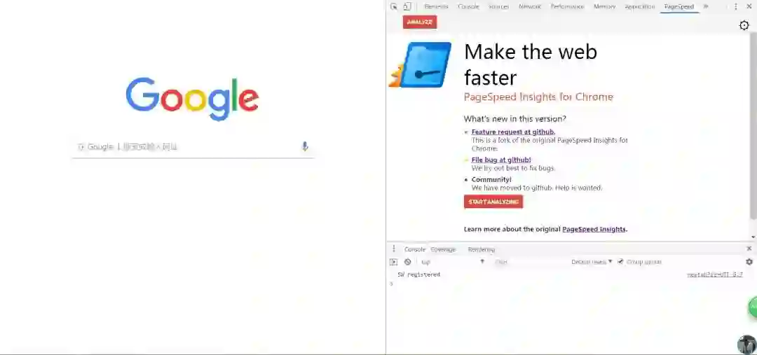 除了 network 版块,其实 chrome 还为我们准备好了一款监测网络传输性能的插件——Page Speed,咱们的文章封面,就是用的 Page Speed 的官方宣传图(因为我觉得这张图再合适不过了)。我们只需要通过下面步骤安装,就可以在 chrome devtools 里找到它了:chrome 菜单→更多工具→拓展程序→chrome 网上应用商店→搜索 pagespeed 后安转即可。