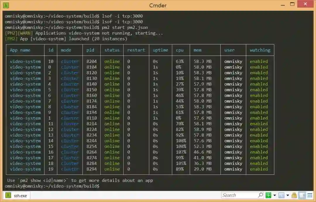 告诉你,我们有解决方案了——pm2。这是它的官网:http://pm2.keymetrics.io/ 。它是一款 node.js 进程管理器,具体的功能,就是能在你的计算机里的每一个内核都启动一个 node.js 服务,也就是说如果你的电脑或者服务器是多核处理器(现在也少见单核了吧),它就能启动多个 node.js 服务,并且它能够自动控制负载均衡,会自动将用户的请求分发至压力小的服务进程上处理。听起来这东西简直就是神器啊!而且它的功能远远不止这些,这里我就不作过多介绍了,大家知道我们在上线的时候需要用到它就行了,安装的方法也很简单,直接用 npm 下到全局就可以了$ npm i pm2 -g具体的使用方法还有相关特性可以参照官网。这里我在 build 文件夹内添加了 pm2.json 文件,这是 pm2 的启动配置文件,我们可以自行配置相关参数,具体可参考 github 源码,运行时我们只要在上线目录下输入命令 $ pm2 start pm2.json即可。