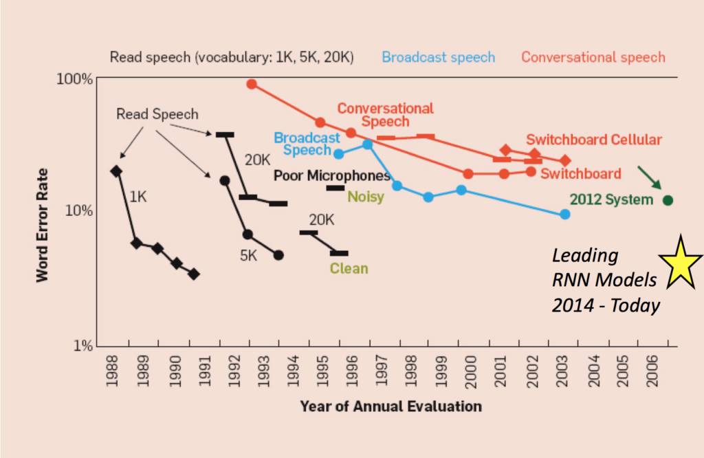 修改自: A Historical Perspective of Speech Recognition, Xuedong Huang, James Baker, Raj Reddy Communications of the ACM, Vol. 57 No. 1, Pages 94-103, 2014