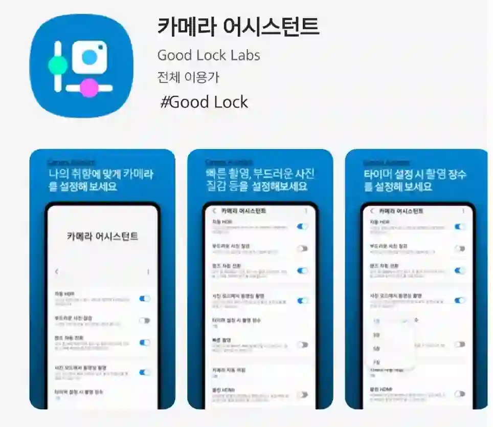 三星现发布了一款新的模块化 App“相机助手”,归属于三星 Good Lock 软件套件,可为“三星相机”带来多种新功能,适用于 One UI 5 系统的三星 Galaxy S22 系列机型。对于摄影领域的初学者,这款 App 可实现自动 HDR、柔化(去锐化,使照片模式下的边缘和纹理更加平滑),而且还会提供一个自动切换镜头的开关(避免调用数码裁切拍照),拍照模式下还可以随时拍摄视频,支持无延迟快门连拍,相机超时等。