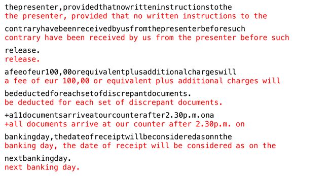 前文提到,集团内外最好的OCR产品,都存在至少一成的词识别错误。另外,即使字符的识别错误较少,由于没有针对领域进行优化和分词,无法直接阅读和无人化使用。因此,将识别结果进行领域相关的纠错分词,也是势在必行。