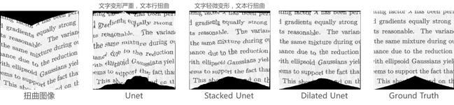 已有的基于Stacked Unet的前沿方法,容易出现裂痕、文本行扭曲、字符形变严重等问题。本文基于Dilated Convolution优化网络结构,并且通过调整损失函数、平滑预测值等方法,提出一种新的形变复原算法,提升模型的效果。