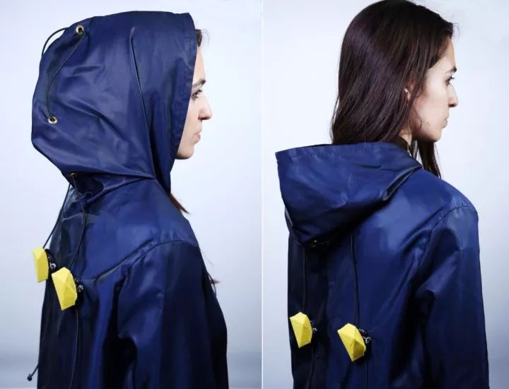 据介绍,微型机器人具备模块化特征,用户可以更换内部传感器来实现不同种功能。比如在雨衣上装上这款机器人之后,它身上的温度传感器能够感知周围温度,并在雨停之后为你拉下帽子。