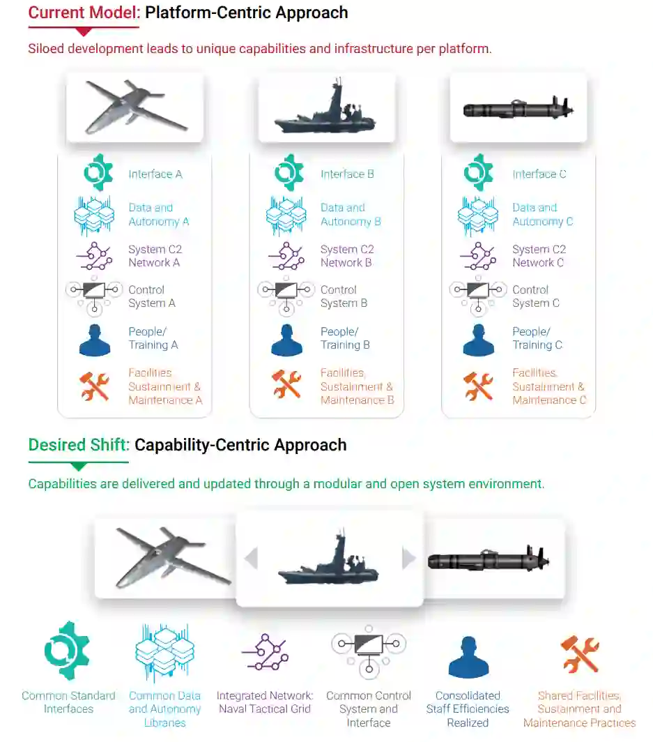 M. M. GILDAY:美国海军作战部长海军上将随着海军适应日益复杂的安全环境,必须了解未来的部队在日常竞争和高端战斗中都需要什么。无人系统(UxS)已经并将继续在未来的分布式海上作战(DMO)中发挥关键作用,而且显然需要部署负担得起的、致命的、可扩展的和连接的能力。这就是为什么海军正在扩大和发展一系列无人驾驶飞行器(UAV)、无人驾驶水下航行器(UUV)和无人驾驶水面舰艇(USV),当把重点转向以更分散的方式运作的小型平台时,它们将发挥关键作用。一个混合舰队对于海军满足新出现的安全问题来说是必要的。需要平台在所有领域的多轴上同时提供致命和非致命的效果。UxS将为未来舰队提供额外的能力--在空中、在水面上和在水下。该活动计划将作为实现无人系统作为海军作战团队的一个组成部分的未来的全面战略。它将是一份活的、反复的文件,阐明愿景,即通过加快技术、流程和伙伴关系中的关键使能因素,建立一支更加准备就绪、致命和有能力的舰队。注意到过去的缺点,因此其方法是深思熟虑的,但有一种紧迫感。将解决理论、组织、训练、物资、领导和教育、人事、设施和政策(DOTmLPF-P)的各个方面,确定并消除能力差距,并努力创建和维护未来的海军部队。MQ-25 T1,左翼下有空中加油站,在坡道上。