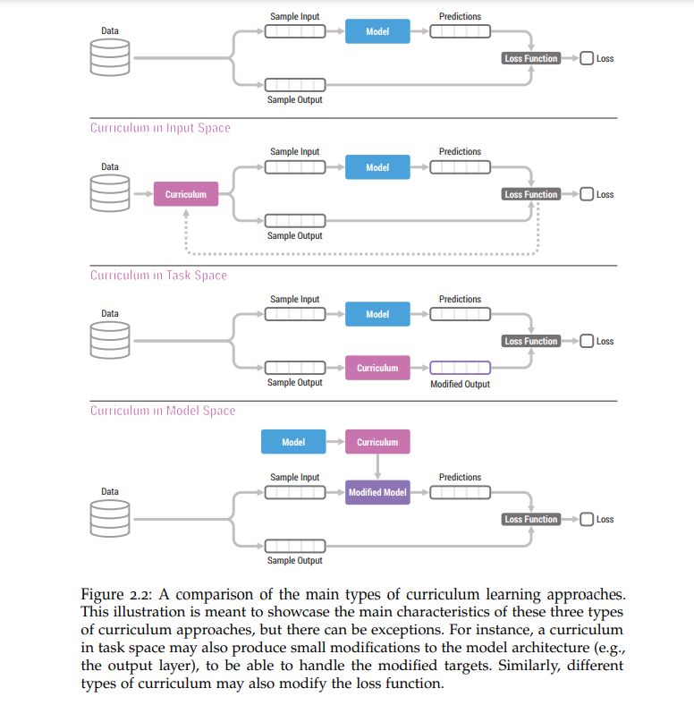 像人类一样学习的AI系统,从简单的问题开始,逐渐解决越来越难的问题,有潜力达到更好的局部最优和/或更快地收敛。此外,使用课程获得的学习收益取决于课程的选择、数据的大小和类型以及模型架构。