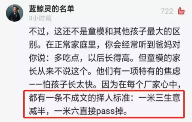 为了防止孩子长高断了财路,家长拿400元一瓶的成长抑制剂,给孩子当饭吃。而职业的童模“工作时间”何止996,简直堪比连轴转。