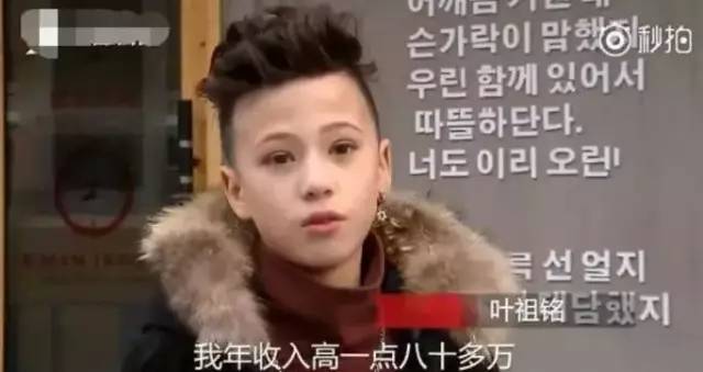 2017年,一个名叫叶祖铭的混血男童模接受采访,面对镜头,当时11岁的叶祖铭说:“我叫叶祖铭,来自塞尔维亚。我的爱好是走秀、跳舞、影视表演、拍平面等,很多很多。做了两年多一点儿。反正这种赚钱方法比较容易,就像今天七十多件,大概八千块钱……我年收入高一点儿八十多万,低一点儿五六十万。”