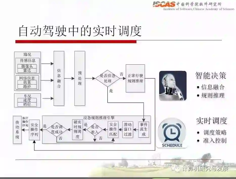 随着车载传感器设备数量的增多,交通设施和城市地标的快速变化、人车混行的复杂路况,对自动驾驶车辆实时反应的能力要求不断地提高.如何通过带有安全性保证的调度策略来应对物理环境中源源不断产生的传感器实时源事件输入,如何及时地控制传动系统来处理源事件并进行推理操作及其响应以规避危险是值得研究的问题.