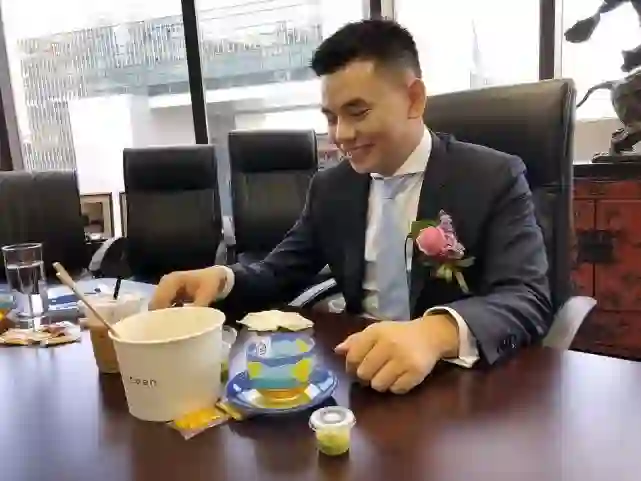 除了敲锣时的意气风发,他多数时候都保持着平静。当天中午他吃的是盒饭,被媒体问及心情时作答:这是普通的带着点快乐的一天。