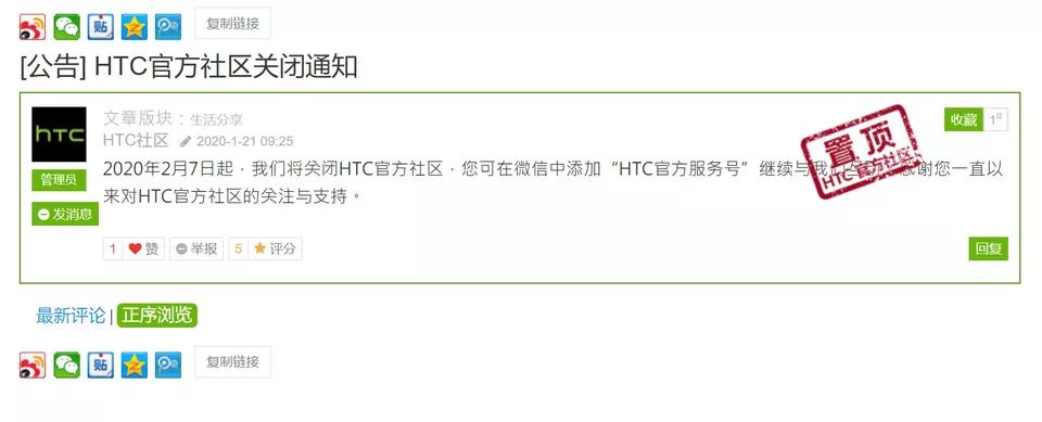 HTC 官方发布公告,从 2020 年 2 月 7 日起,HTC 官方社区将正式关闭。