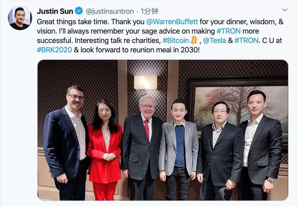 孙宇晨终与巴菲特共进晚餐 见面礼包括一枚比特币