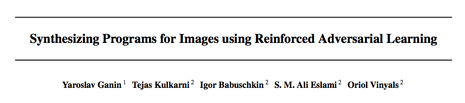在《Synthesizing Programs for Images using Reinforced Adversarial Learning》研究中,DeepMind 给人工智能体配备了用于生成图像的工具,并展示了智能体可以推断出数字、字符和画像被创造出来的过程。关键是,它们学会这么做完全是出于自觉,没有使用人类标注的数据集。这与最近的研究《A Neural Representation of Sketch Drawings》恰恰相反,后者目前仍依赖于从人类演示中学习,是一个时间密集型的过程。