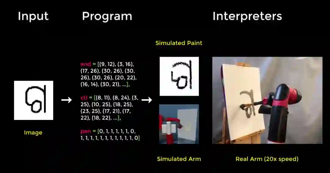 关键是,该框架具备可解释性,因为它能生成一系列控制模拟画刷的动作。这意味着该模型可以将其学得的东西应用到模拟绘图程序上,以在其他类似环境中重新创建字符,如在模拟或真实的机械臂上。
