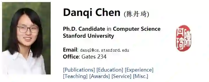 作者简介:陈丹琦,清华本科(姚班),斯坦福博士即将毕业,师从Christopher Manning,毕业后成为普林斯顿大学计算机学院助理教授,在学期间曾在ACL,EMNLP,NIPS等自然语言处理与机器学习定会发表多篇文章。