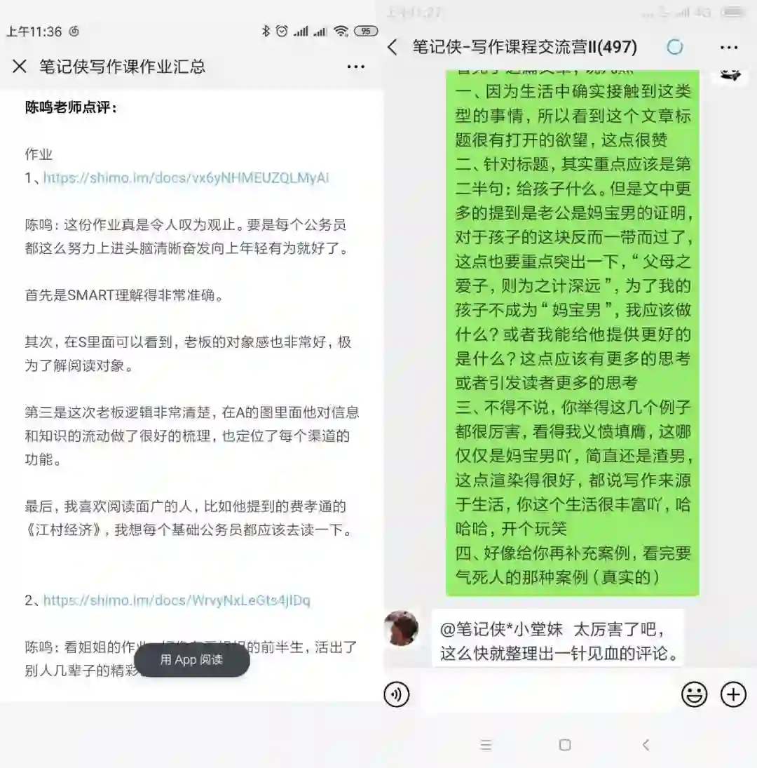 ② 结合课程内容,布置作业。由陈鸣老师筛选出优秀作业,一一指导点评,在线追踪每一位学员的学习进展。