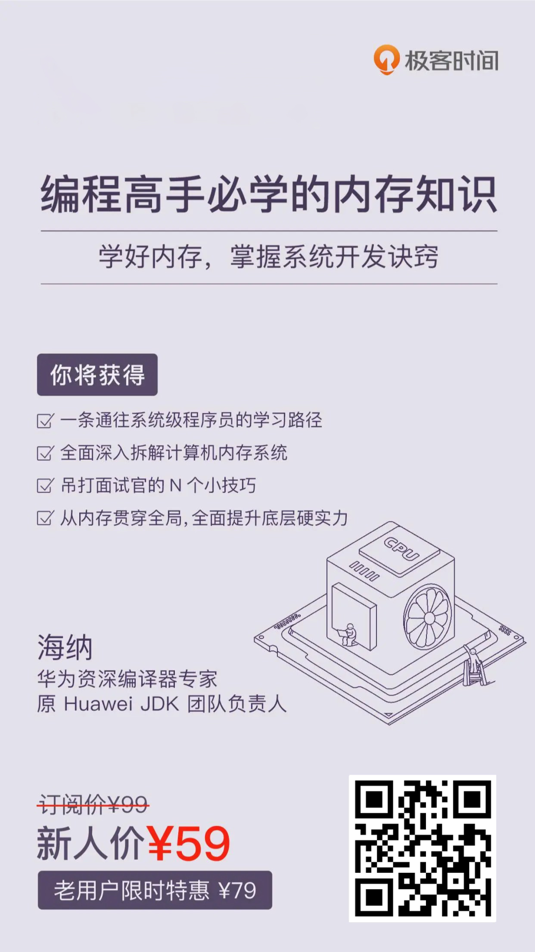 作者海纳,原是 Huawei JDK 团队的负责人,现在担任华为资深编译器专家,主要负责华为编译器领域的相关创新工作。这两年,他笔耕不辍,不仅在极客时间连载新的内存专栏,还在业余时间筹备了《从零开始写 Linux 内核》的新书,估计 2022 年上市,是真的很勤奋了。