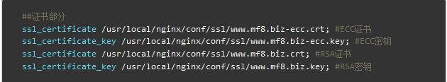 双证书配置的很简单了,保证域名的证书有RSA和ECC各一份即可。