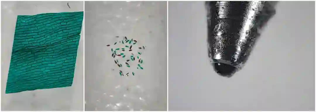 (微距 左:洋葱表皮切片,中:草履虫,右:圆珠笔尖)